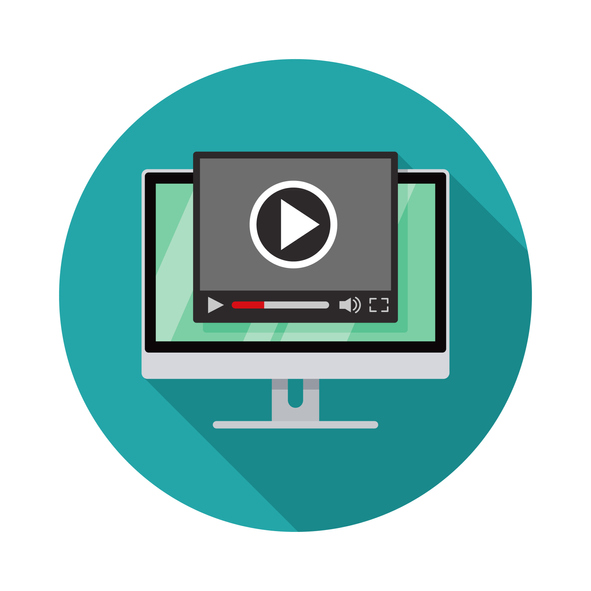 A flat design desktop PC screen icon with long side shadow. File is built in the CMYK color space for optimal printing. Color swatches are global so it’s easy to change colors across the document.